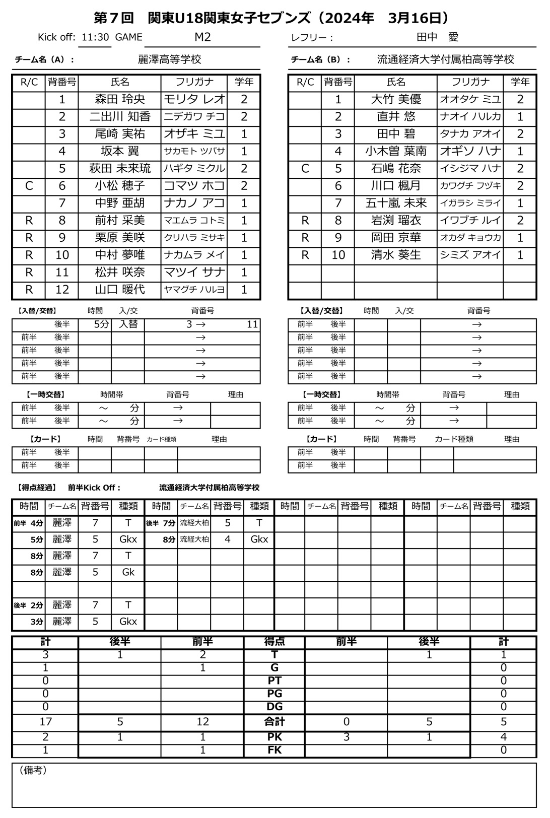 流経大柏 7vs31 関東学院六浦