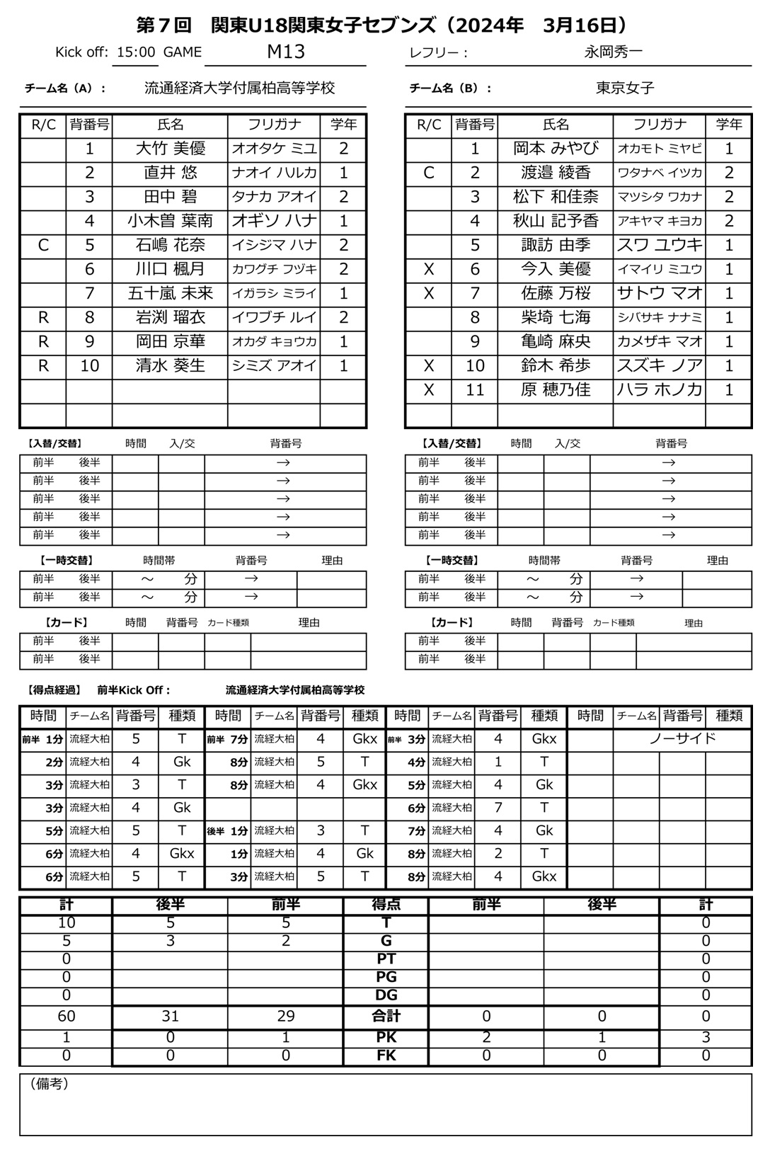 流経大柏 60vs0 東京女子